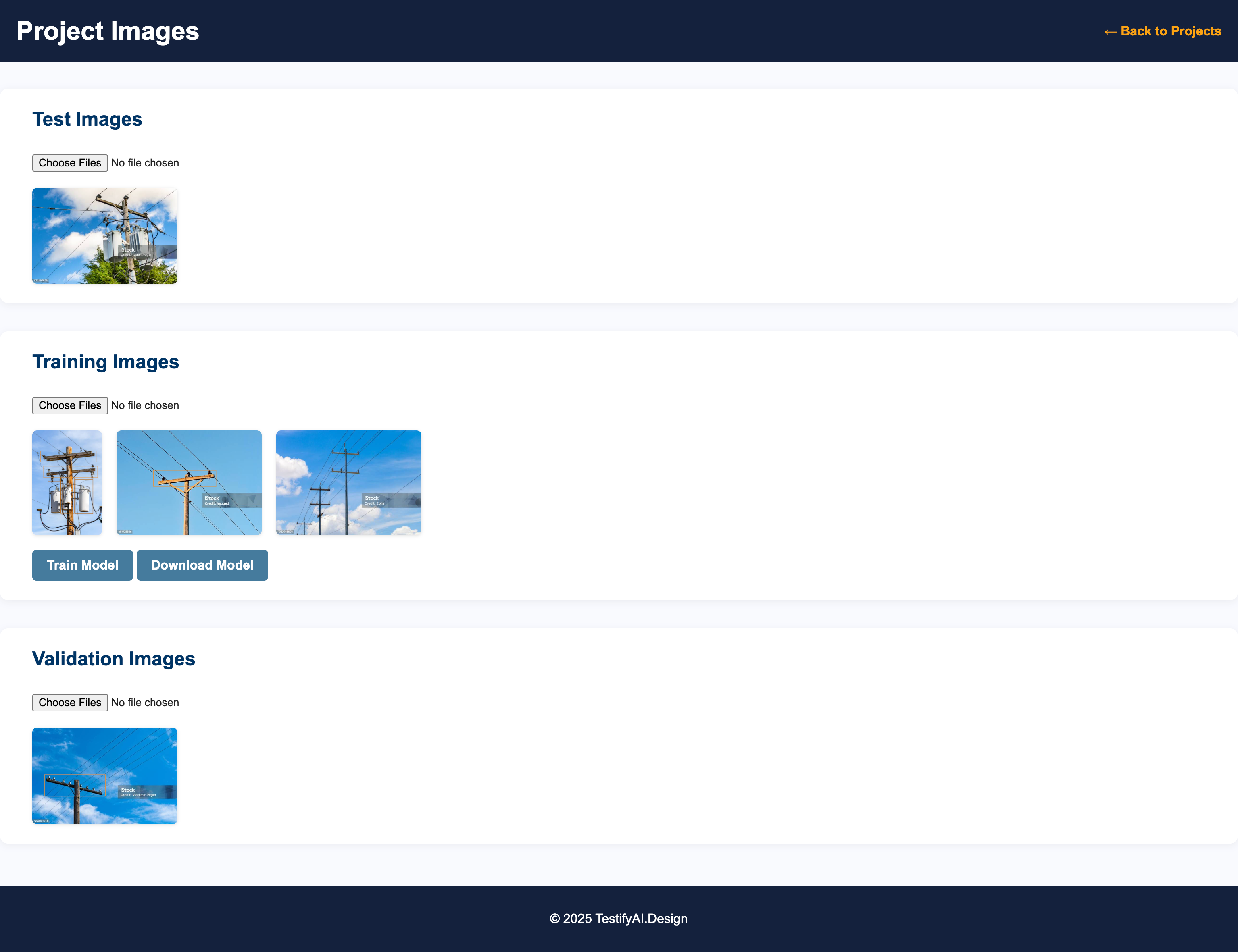 Each image classification effort begins with a dedicated project, allowing users to manage and track different models and datasets independently.