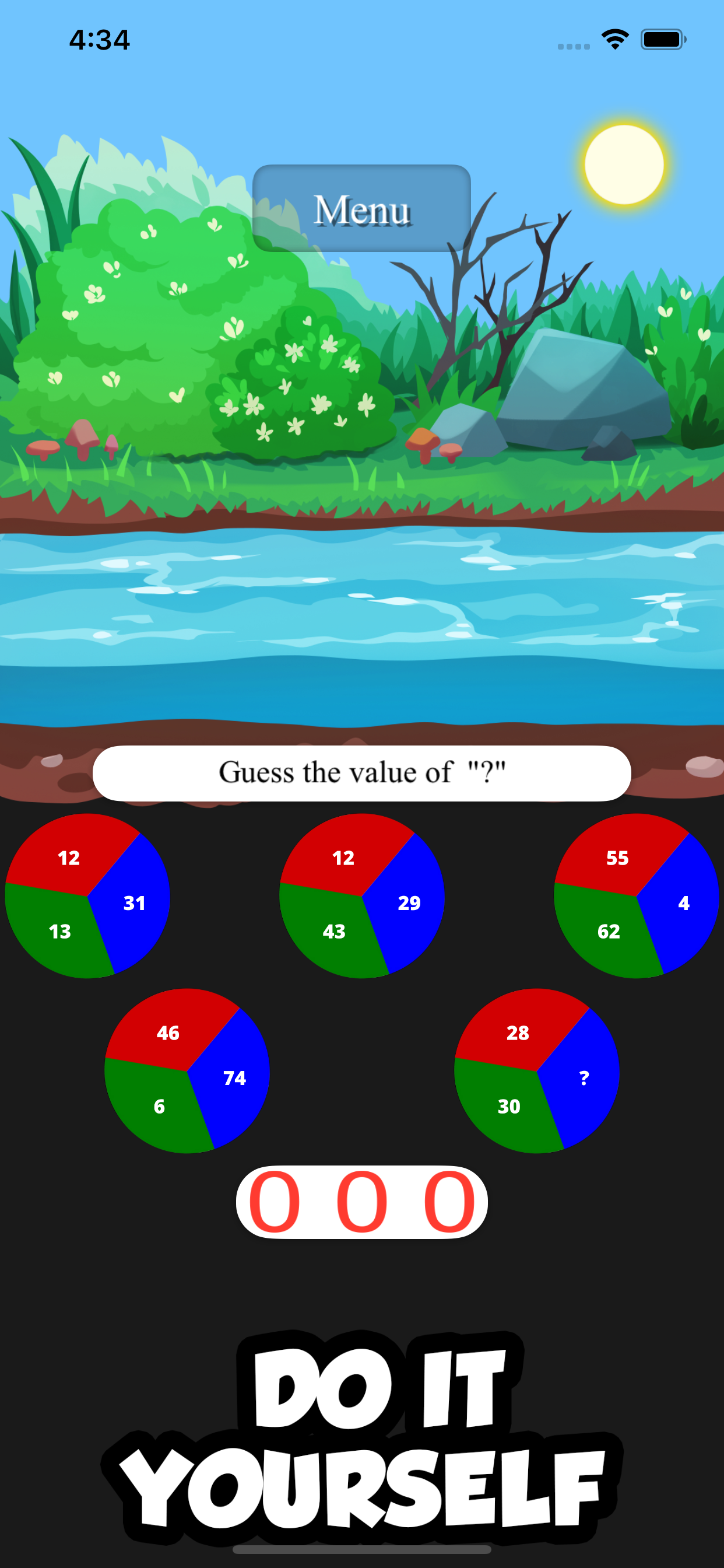 Choose the number on the left to determine the "?". To many guesses will skip to the next puzzle.