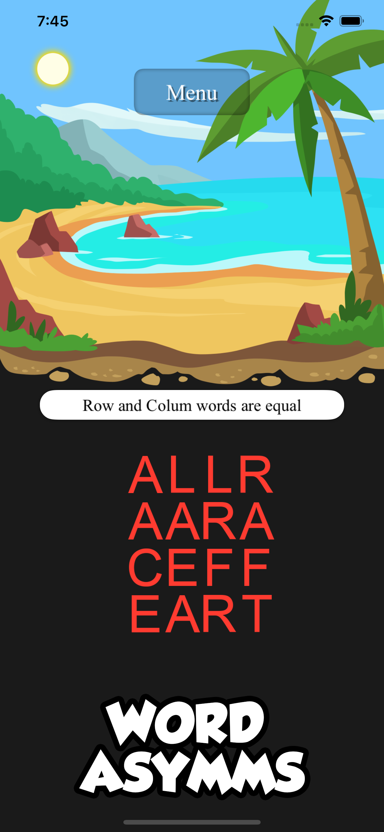 Words in the row equal the words in the column.